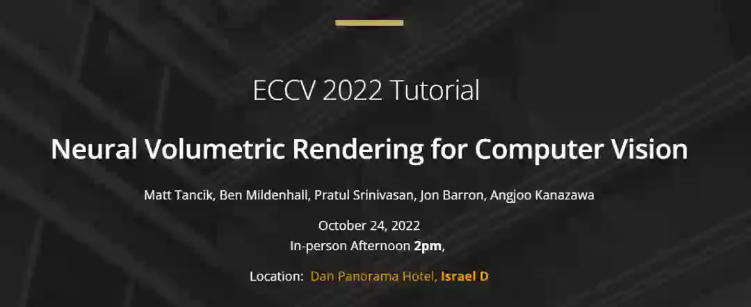 两年前在ECCV 2020上提出的神经辐射场(NeRFs)展示了从一组校准图像重建照片逼真和沉浸式3D场景的令人兴奋的潜力。接下来是大量的作品,探索使用神经体渲染作为一种技术的潜力,以实现许多令人兴奋的应用程序,并解决计算机视觉、图形学、机器人等领域的基本问题。在本教程中,我们将介绍一个简短的课程,从基本原理开始接近神经体渲染,包括它与基于图像的绘制和反向图的历史的关系,它的核心组件及其派生,常见的实践,未来的挑战,以及实际的编码示例。这个半天的教程的目标不是提供一系列关于该领域最近论文的演讲,而是通过抽象神经体渲染领域的最新发展,为新手和中级研究人员提供教学构建模块,以深入理解材料。https://sites.google.com/berkeley.edu/nerf-tutorial/home