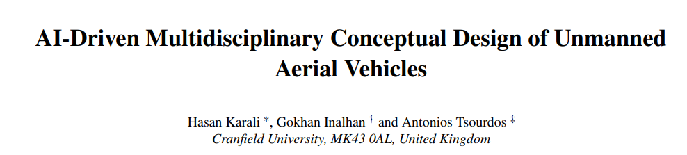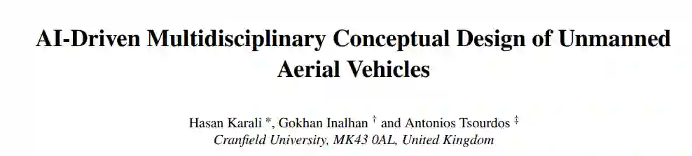 本文介绍了基于人工智能驱动分析模型的无人驾驶飞行器多学科概念设计框架。这种方法利用人工智能驱动的分析模型(包括空气动力学、结构质量和雷达截面预测),为初始设计阶段带来定量数据,从而能够从各种优化的概念设计中选择最合适的配置。由于设计优化周期的存在,机翼、尾翼和机身等关键部件的初始尺寸可以更精确地提供给后期的设计活动。同时,生成的结构还能通过设计迭代中的反馈回路选择更合适的设计点。因此,除了降低设计成本外,这种方法还在整个设计过程中提供了大量的时间优势。