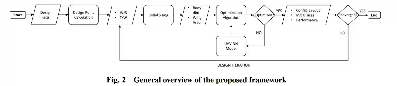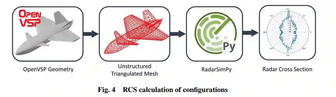 本文介绍了基于人工智能驱动分析模型的无人驾驶飞行器多学科概念设计框架。这种方法利用人工智能驱动的分析模型(包括空气动力学、结构质量和雷达截面预测),为初始设计阶段带来定量数据,从而能够从各种优化的概念设计中选择最合适的配置。由于设计优化周期的存在,机翼、尾翼和机身等关键部件的初始尺寸可以更精确地提供给后期的设计活动。同时,生成的结构还能通过设计迭代中的反馈回路选择更合适的设计点。因此,除了降低设计成本外,这种方法还在整个设计过程中提供了大量的时间优势。
