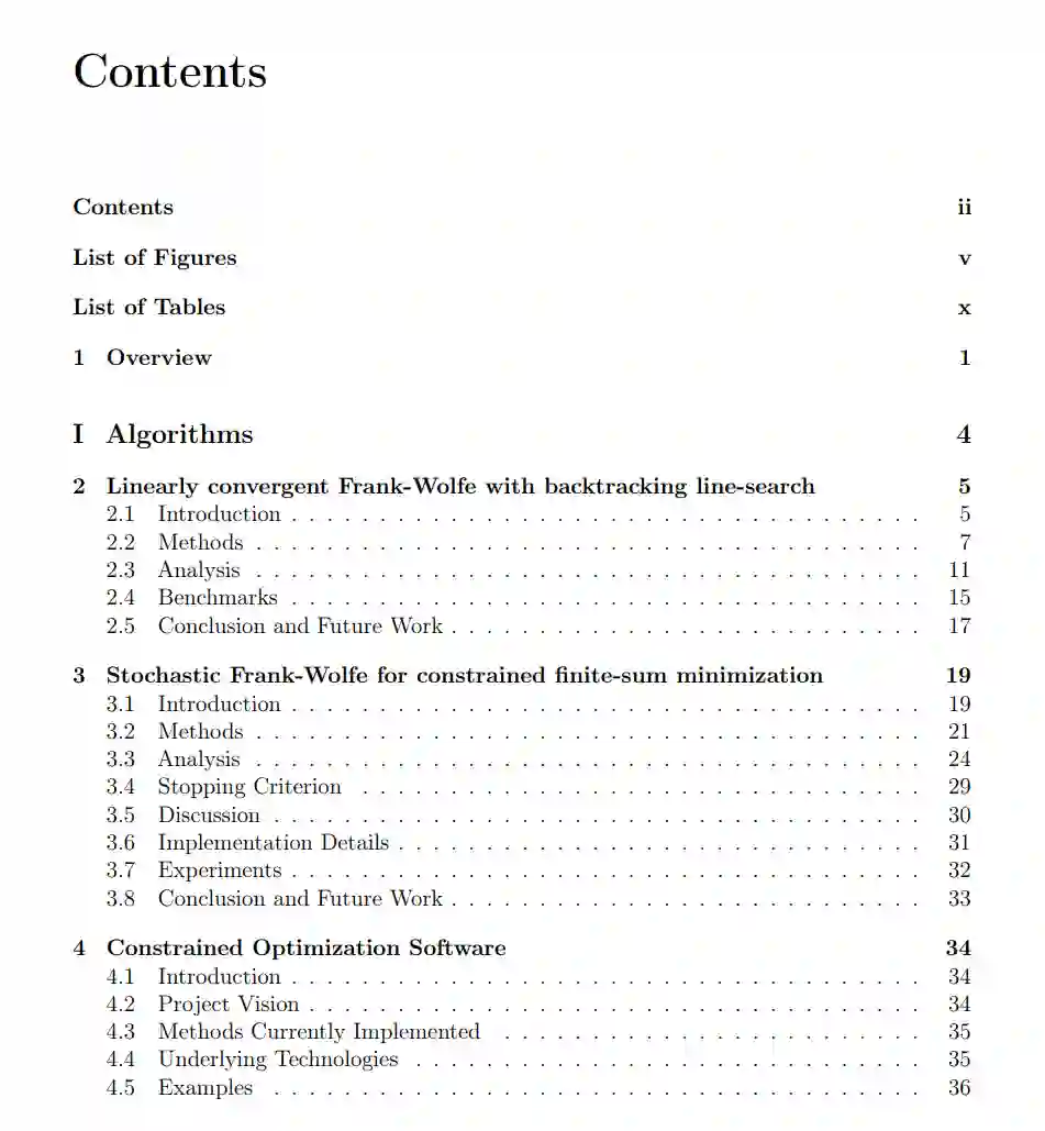 近年来,机器学习模型在旨在匹配人类感知的领域(计算机视觉、音频处理、自然语言)中取得了无数的成功。这些成功是通过理解如何利用模型输入中的结构来实现的:图片、声音、文本、代码,甚至分子的数字表示[1, 2, 3, 4]。为了在工程和科学中达到相似的成功水平,模型必须纳入额外的结构性约束:模型的内部和输出都应满足某些关键属性(例如,模型内部的稀疏或低秩权重,以及模型输出的物理方程)。尽管优化领域长期以来一直关注如何实施这些约束,但将优化方法带来的结构与数据驱动模型的灵活性结合起来的努力是非常近期的[5, 6]。这篇论文提出了新颖、高效的方法,将结构融入机器学习模型中,无论是在模型的内部(第一部分)还是在模型的输出(第二部分)。我们认为这样的混合系统将是为复杂的物理应用开发高性能系统的关键。机器学习中的结构性约束最近再次将Frank-Wolfe(FW)算法家族推到了聚光灯下。Frank-Wolfe算法允许对决策变量(例如,模型权重)施加凸约束,同时保持决策变量的稀疏表示。这篇论文的第一部分开发了新颖的Frank-Wolfe算法变体,以提高算法的实际速度。此外,我们还描述了我们的两个开源优化库:COPT和CHOP。在实际环境中部署决策制定系统时,系统必须执行物理约束:差异可能导致未定义的决策。例如,如果我们预测一个地区不同粒度的水库的入水流量,不同级别的预测必须执行质量守恒;否则,会有未被计入的水量,破坏决策制定系统。这篇论文的第二部分考虑了将物理约束纳入深度学习模型的问题,采用偏微分方程和分层质量守恒的形式。