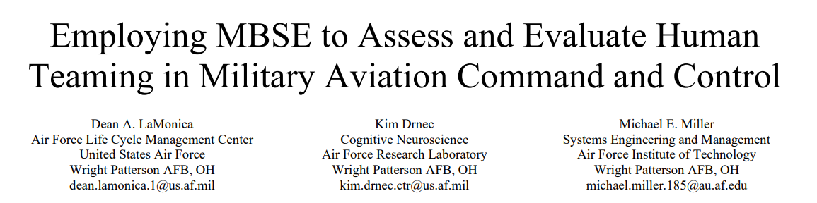 未来的系统开发包括指挥和控制(C2)技术,以支持空战管理人员(ABM)和战斗机飞行员,因为他们支持在一个更大的系统系统中使用自主无人机系统(UAS)的复杂任务。在复杂的、不断发展的和动态的环境中,人类作战员有效地观察、定位、决定和行动的能力是必不可少的。然而,在ABM和飞行员之间的UAS监管变化过程中,作战者的表现可能会下降,这大大增加了作战者的认知工作量,超过了以往任务中通常看到的工作量。不幸的是,C2技术的发展往往把重点放在自动化和硬件上,使人类作战员的参与度不足,不利于人与自动化的互动。目前,数字工程和基于模型的系统工程(MBSE)工具正在迅速被系统开发、整合和管理所采用,以支持整合这些系统所需的复杂开发工作。目前的研究在MBSE工具中整合了人的考虑,以分析开发过程中人与自动化的合作。该方法支持在建模的任务模拟中用一对专门的活动图表示自动化辅助和人类作战者,称为任务行为者图和OODA2活动图,允许分析作战过程中的错误和瓶颈。这种方法说明有可能减少作战员的认知工作量,改善作战员的决策,提高系统性能,同时减少系统重新设计的时间。