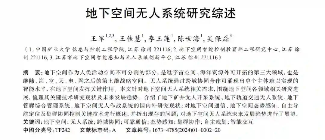 关键词:地下空间;无人系统;跨域协同;可靠通信;态势感知;集群协作;自主规划;智能交互.、