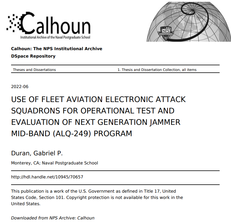 相反,本分析侧重于海军航空兵的电子攻击中队(VAQ)和ALQ-249下一代中波段干扰器(NGJ-MB)的计划开发、生产、测试和实战。缩小分析重点提供了一个主要国防采购计划(MDAP)的具体例子,该计划对于面对同行对手至关重要,而且考虑到已经投入到该计划的时间和成本,"规模太大,不能失败"。