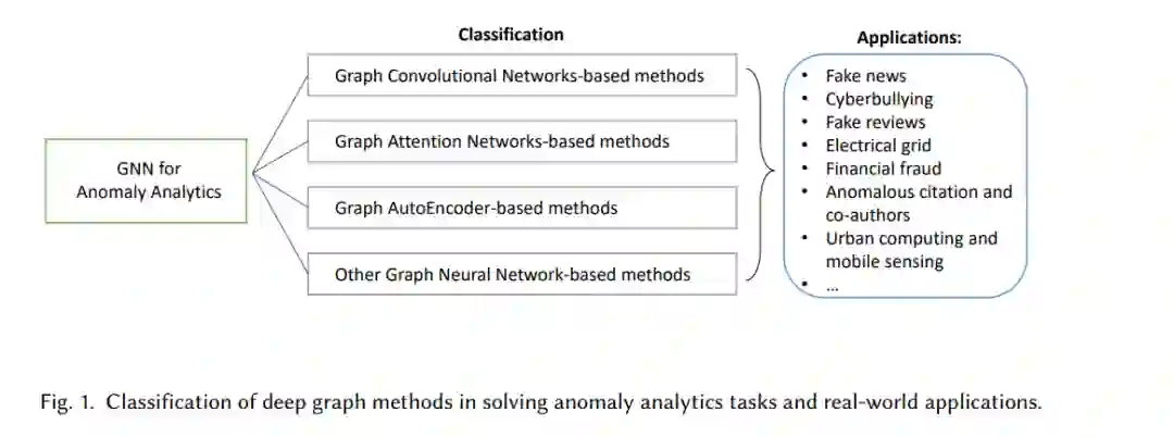 **已有一系列深度异常检测研究证明,在解决上述挑战方面,其性能明显优于传统模型。**尽管采用的技术从图卷积网络(GCNs)到图自编码器(GAEs)不同,但由于现有异常的复杂性,大多数方法专注于在特定情况下检测或预测异常。目前很少有人对这些方法进行全面的总结,并清晰地分析它们如何应用于解决实际应用场景。