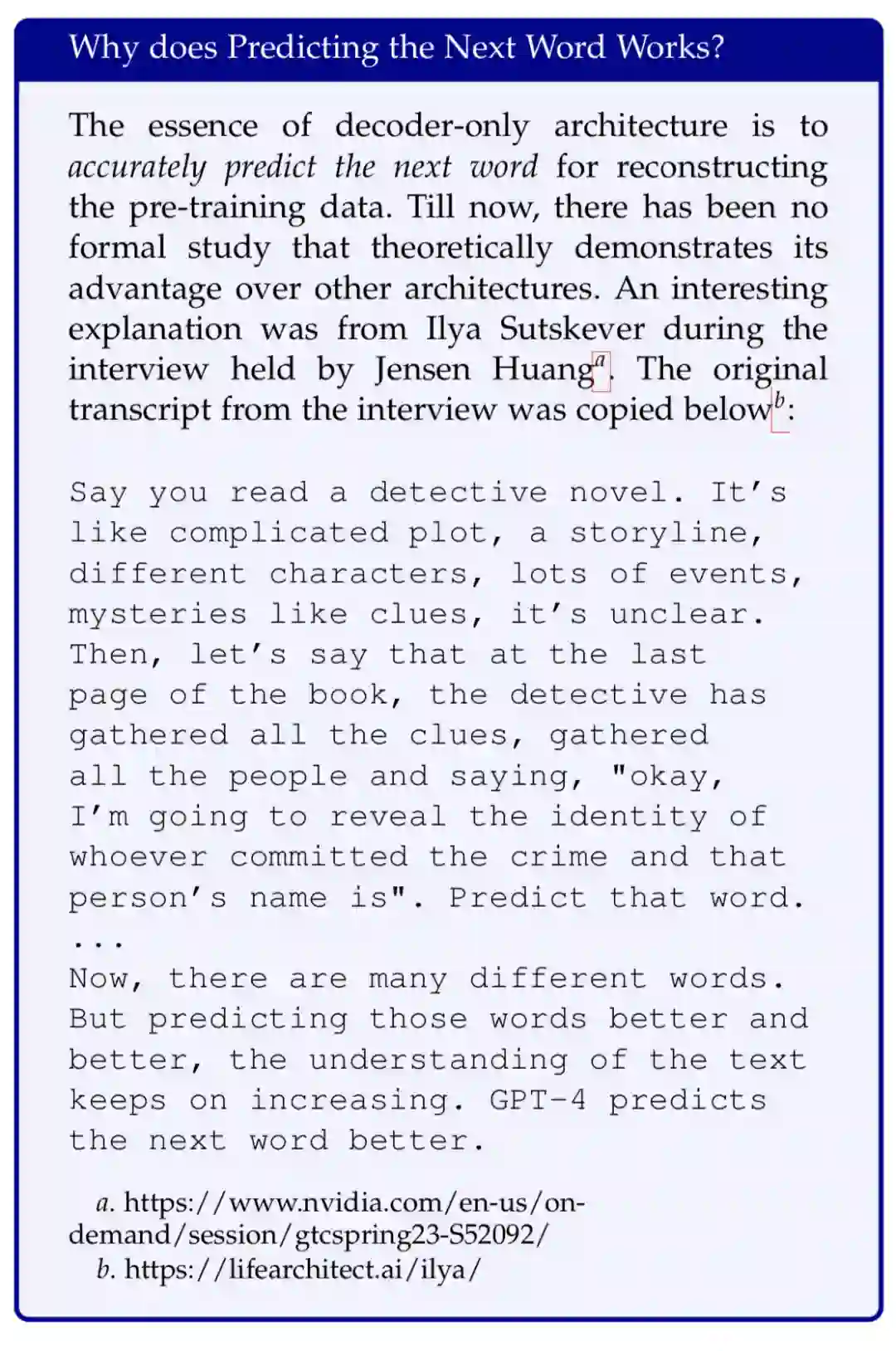 针对GPT系列的核心“预测下一个词”,还进一步加入了一些Ilya Sutskever的采访记录: