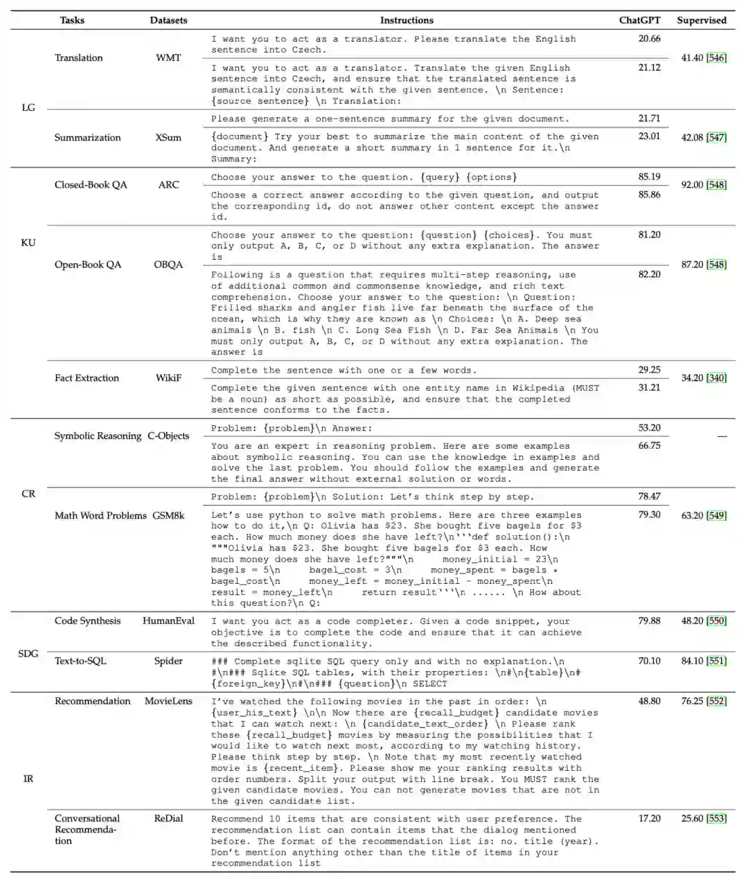 除此之外,我们还总结了一些关键的提示设计原则,包括清晰表述任务目标、将复杂任务进行分解以及使用模型友好的格式。进一步我们基于这些设计原则,展示了一系列有用的提示设计小贴士。最后,我们结合多种常见任务,基于ChatGPT具体实验了不同提示对模型性能的影响,供读者在使用提示执行具体任务时参考。