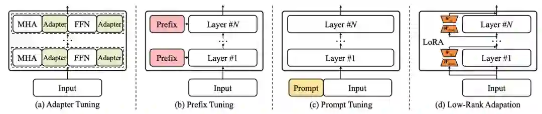 随着大语言模型的关注度日渐上升,如何更轻量地微调和使用大语言模型也成为了业界关注的热点,为此,我们新增参数高效适配章节和空间高效适配章节。在参数高效适配章节,我们介绍了常见的参数高效适配技术,包括Adapter Tuning、Prefix Tuning、Prompt Tuning、LoRA等等,并列举了近期结合这些技术在大模型上的具体实践。