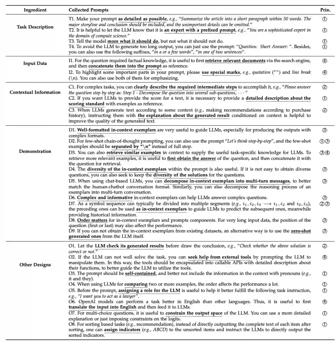 在大语言模型时代,提示成为了人与机器交互的重要形式。然而,如何编写好的提示是一门对技巧和经验要求很高的手艺。为了让读者能够快速上手大语言模型的提示设计,我们给出了一个实用的提示设计指南。我们详细介绍了提示的关键组件,并讨论了一些关键的提示设计原则。一个完整的提示通常包含四个关键组成因素,即任务描述、输入数据、上下文信息和提示风格。为了更好的展示这些组成因素,我们给出了直观的提示样例表。