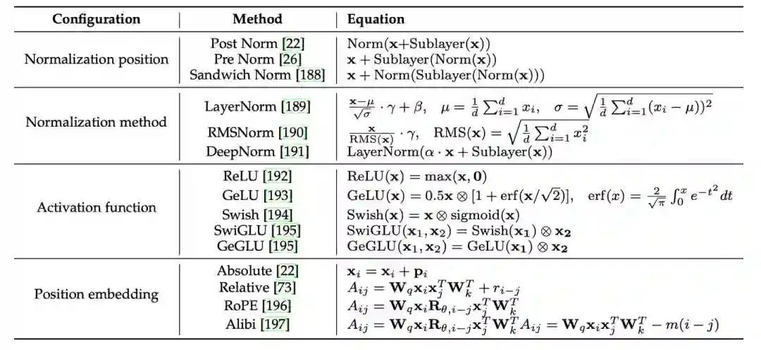 此外,我们详细补充了模型架构的各组件细节,包括分词、归一化方法、归一化位置、位置编码、注意力与偏置等等,并提供了Transformer架构多种配置的详细公式表。在最后的讨论章节,我们针对研究者广泛关注的长文本编码与生成挑战进行了讨论。