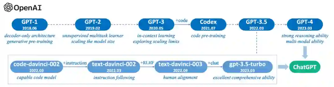 此外,我们新增了一部分关于OpenAI GPT系列语言模型的技术演进阶段的介绍(并附图)。这一部分将帮助读者了解GPT系列模型如何从最初的GPT开始,逐步演变成例如ChatGPT和GPT-4等更先进的大语言模型。