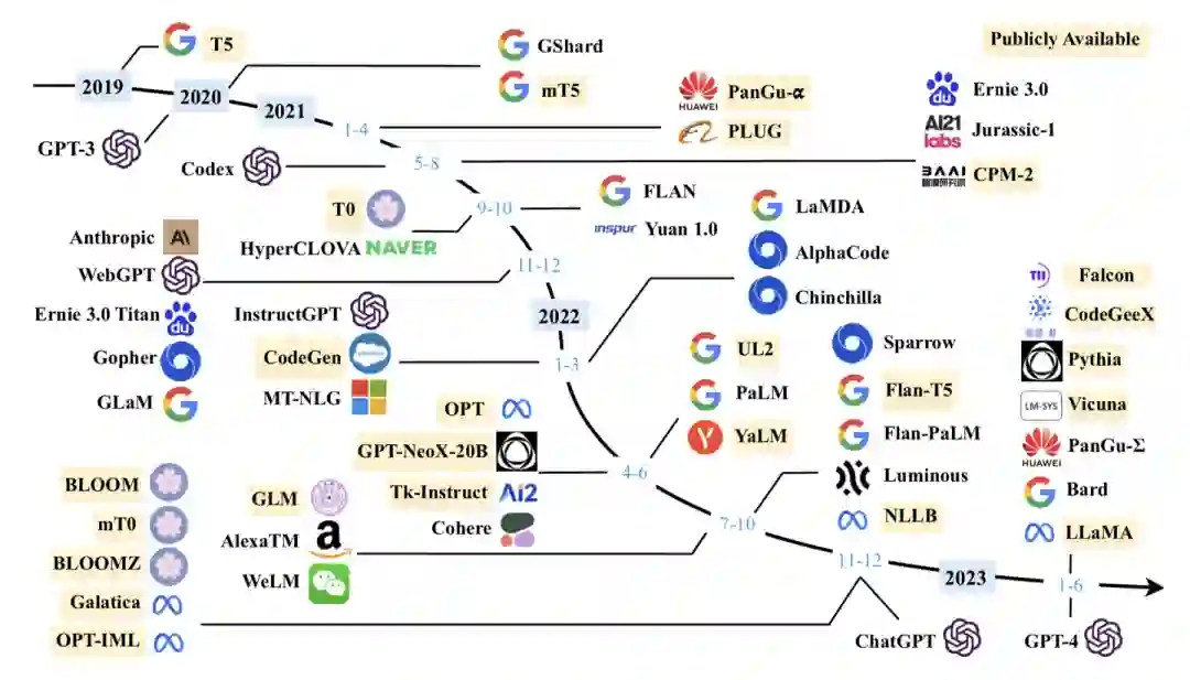我们对于最新符合条件的模型进行了补充,持续更新了现有的10B+的模型图: